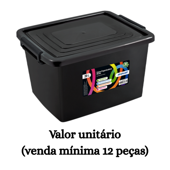 #ATACADO-VALOR UNITÁRIO P/12 PÇS-CAIXA ORG PRETA 20L-ARQPLAST